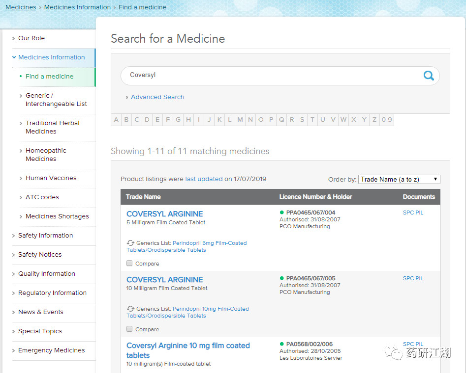 【药研技巧】5分钟图解英、德、意、爱尔兰国原研药品信息查询(二)